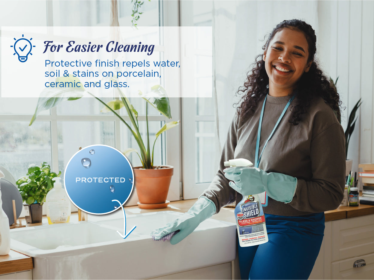 Experience the ultimate protection for your glass surfaces with Invisible Shield® Glass & Shower Coating + Repellent. This 16oz 2-PACK comes with a specialty polishing pad for easy application. Our product creates a durable protective finish that repels water, soap, and minerals, keeping your surfaces sparkling and new. With one application lasting up to a year or longer, you'll save time and effort on cleaning and maintenance. This versatile coating works on glass, porcelain, tile, acrylic, granite, and more, covering over 1000 square feet with just two bottles. Upgrade your cleaning routine and maintain the beauty of your surfaces with Invisible Shield® Glass & Shower Coating + Repellent.